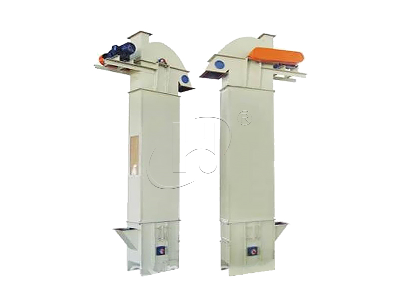 采用橡膠帶作為牽引構(gòu)件,適用于中等產(chǎn)量、中小塊度物料的垂直輸送,常用于糧食、飼料等行業(yè)。