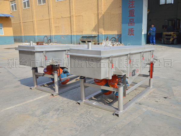 直線振動篩采用優(yōu)質(zhì)振動電機做為振動源,本篩機配有兩臺振動電機,工作時兩臺電機偏心塊做相反方向轉(zhuǎn)動,水平方向兩臺電機合力為零,垂直于電機軸方向形成一合力,電機軸與篩板成一定夾角,合力使物料在篩網(wǎng)上被拋起,同時向前做運動。物料從經(jīng)給料機均勻地進入篩機的進料口,通過多層不同孔徑篩網(wǎng)產(chǎn)生數(shù)種產(chǎn)品和不合格的篩上物、篩下物分別從各自的出口排出。